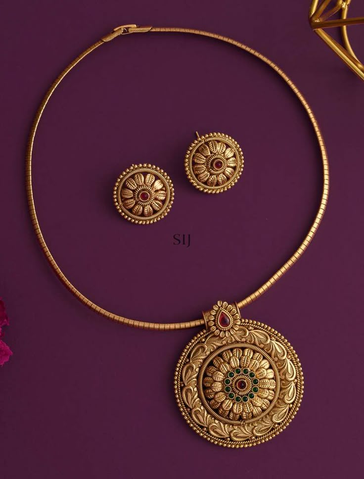 Elegant Circle Design Gold Plated Chain With Pendant Set