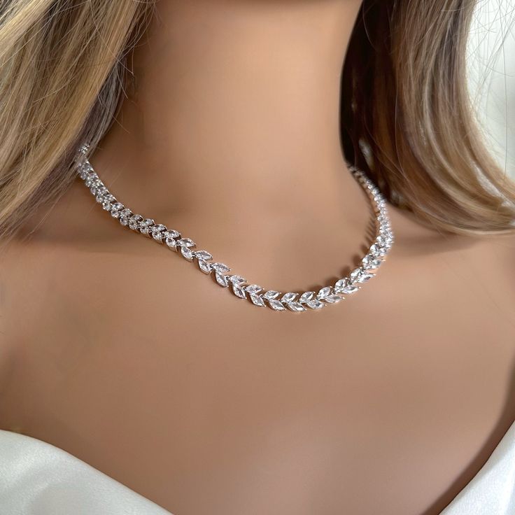 Silver White Stone Bridal Necklace Set